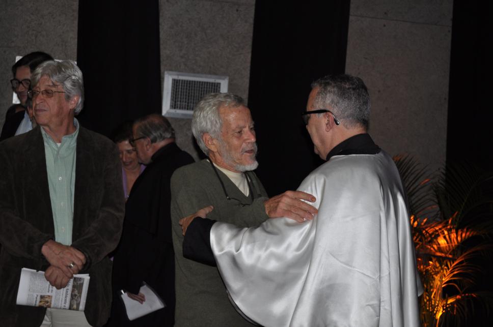 Confraternização após a cerimônia. Pe. Josafá cumprimenta o prof. Ripper.