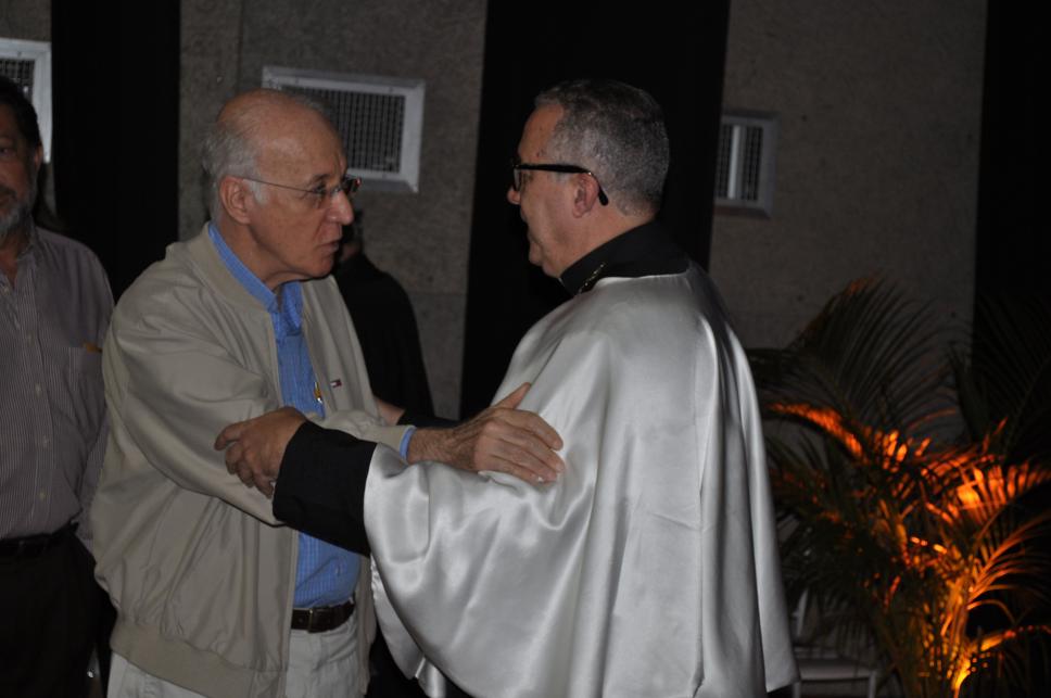 Confraternização após a cerimônia. Pe. Josafá cumprimenta o prof. César Romero.