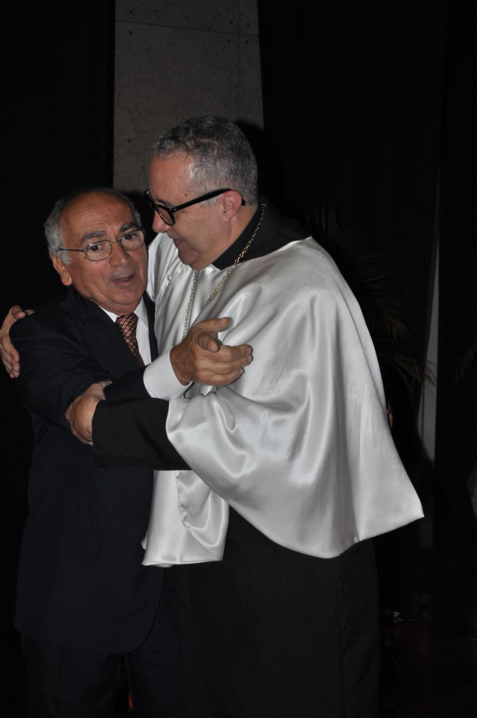 Confraternização após a cerimônia. Pe. Josafá cumprimenta o prof. Augusto Sampaio.