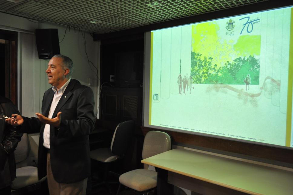 O Reitor Padre Josafá Carlos de Siqueira, S.J. discursa no lançamento do site comemorativo dos 70 anos da PUC-Rio.