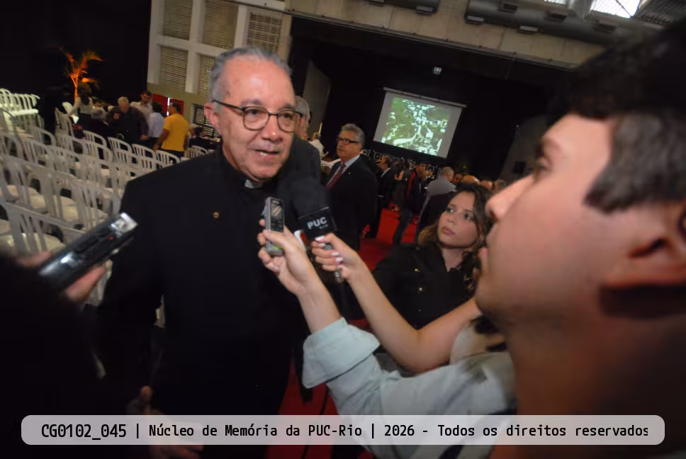 O Reitor Padre Josafá Carlos de Siqueira S.J. é entrevistado após a cerimônia.