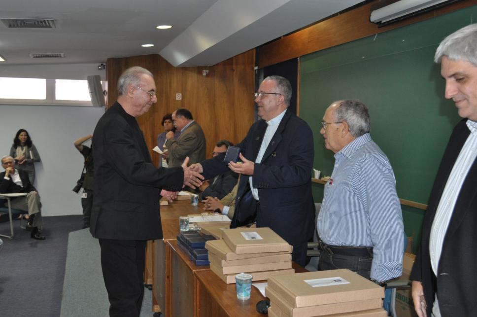 Entrega da medalha ao Prof. João Rua, do Departamento de Geografia, pelo Reitor Padre Josafá Carlos de Siqueira, S.J.