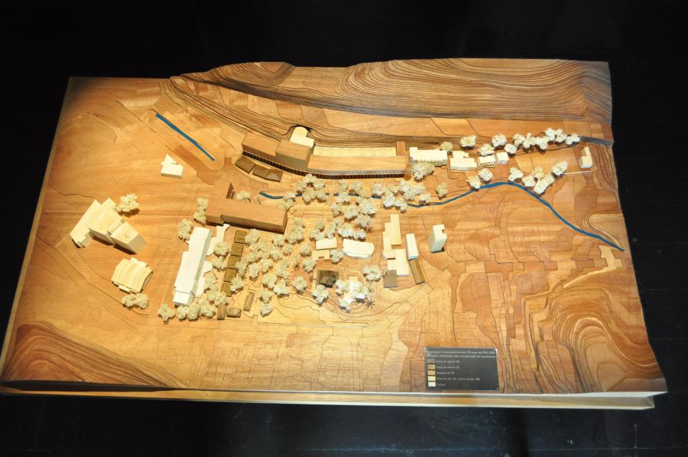 Maquete do campus Gávea exposta na Exposição PUC-Rio 70 anos.