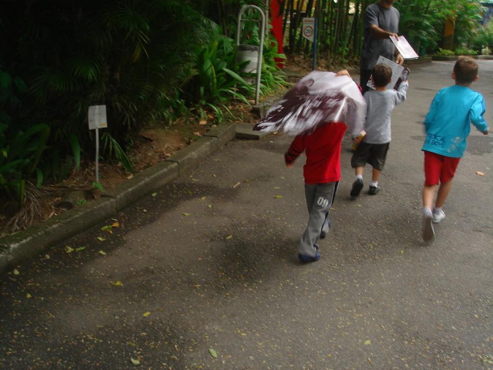 Crianças em visita a Exposição PUC-Rio 70 anos brincam com o folder da Exposição.