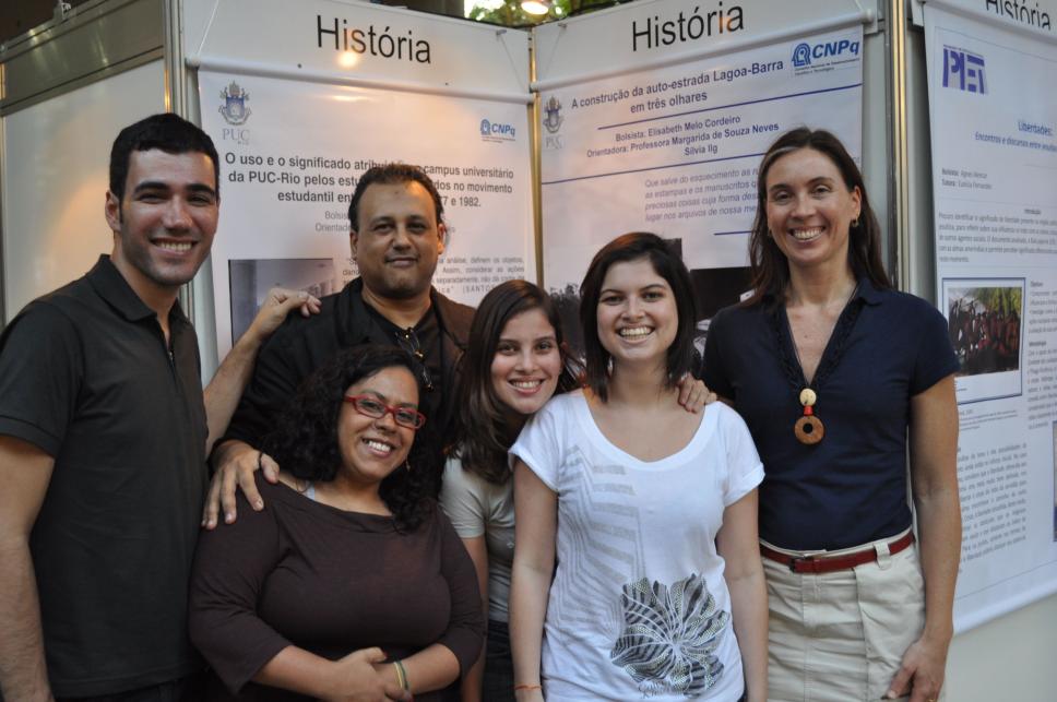 Equipe do Núcleo de Memória na exposição dos posters de Juliana Cordeiro de Farias e Elizabeth Cordeiro no PIBIC/História.