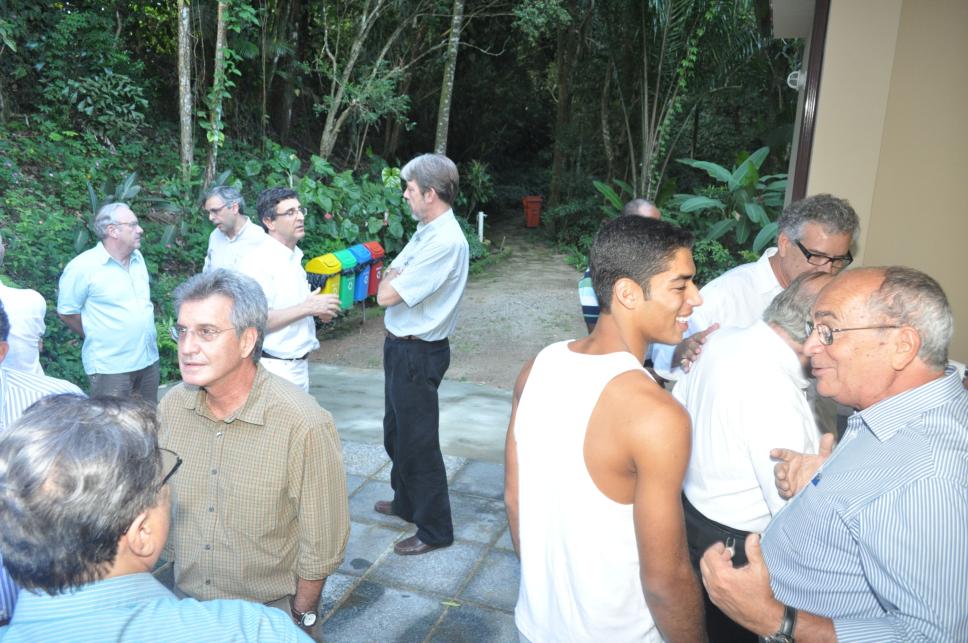 Convidados, professores e alunos conversam antes do início da cerimônia.