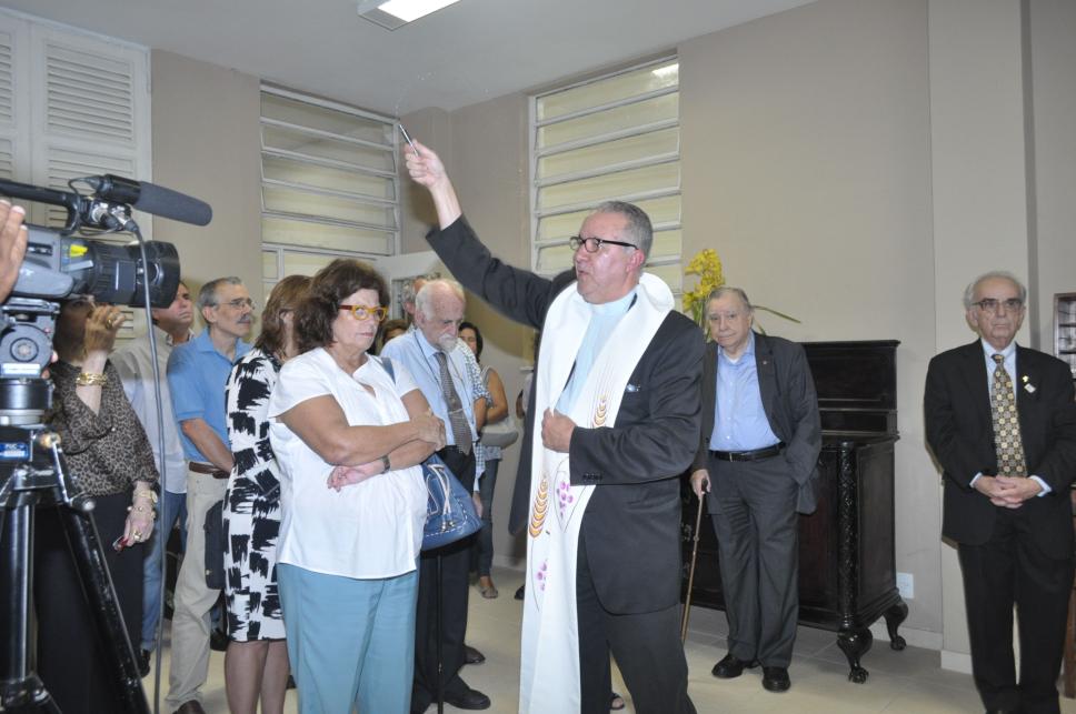 O reitor pe. Josafá, S.J. abençoa a nova sede do curso de Ciências Biológicas.