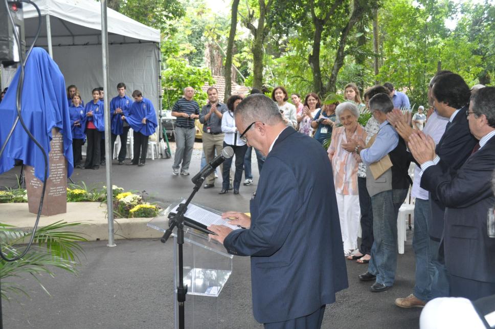 Cerimônia de inauguração do busto do Padre Antônio Vieira. O reitor Padre Josafá, discursa.