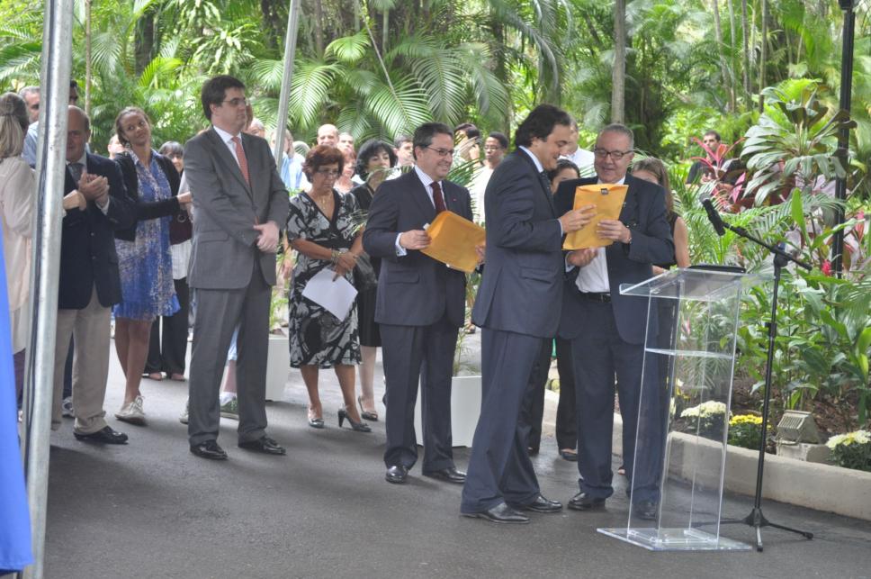 Embaixador Stelio Marcos Amarante; cônsul de Portugal António José Emauz de Almeida Lima; reitor pe. Josafá Carlos de Siqueira, S.J.; Ivone de Figueredo Santos; Alécia Suaid Moura