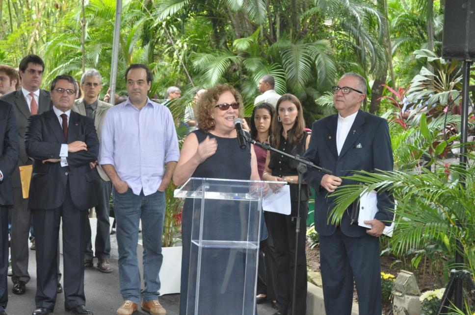 embaixador Stelio Marcos Amarante; secretário municipal de Conservação e Serviços Públicos Carlos Roberto Osório; profa.Izabel Margato (LET); reitor pe. Josafá Carlos de Siqueira, S.J.