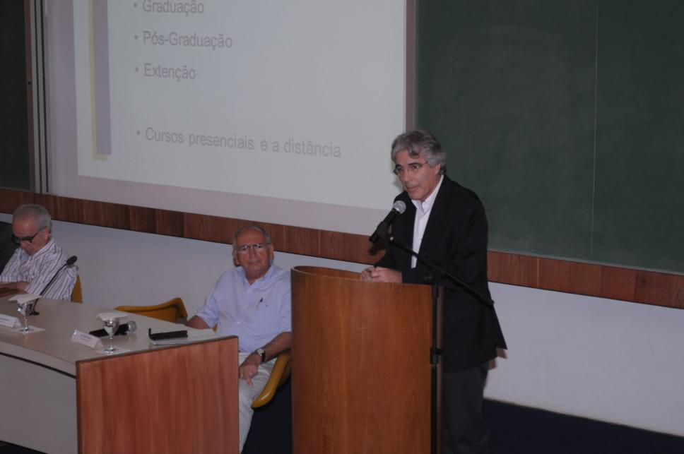 O Vice-Reitor Acadêmico, prof. Bergmann, apresenta o relatório anual da vice-reitoria Acadêmica aos membros da congregação universitária.