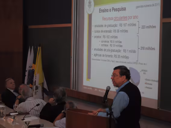 Imagens da Assembleia Universitaria de 2011, e da confraternização ao final. Na Assembleia foi lançada a Agenda PUC-Rio 2012.