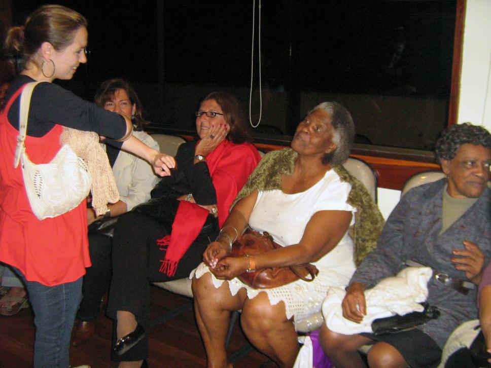 Convidadas confraternizam, entre elas representantes do Jongo da Serrinha.