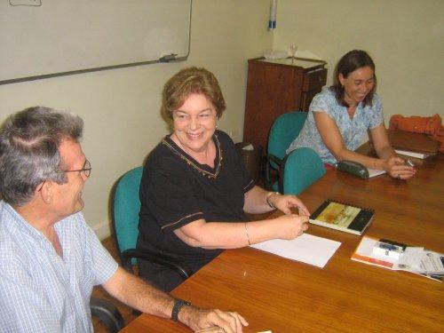 Entrevista com o fotógrafo Antônio Albuquerque. Na foto, Antônio Albuquerque, a profa. Margarida de Souza Neves e Sílvia Ilg Byington. 29/02/2008.