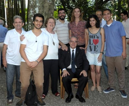 O Reitor da PUC-Rio, Prof. Pe. Josafá Carlos de Siqueira S.J., a Profa. Margarida de Souza Neves e a equipe do Núcleo de Memória na confraternização após a Assembleia Universitária.