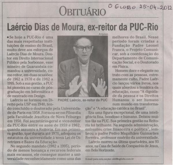 Obituário do Padre Laércio Dias de Moura S.J. publicado no jornal O Globo de 25/04/2012.