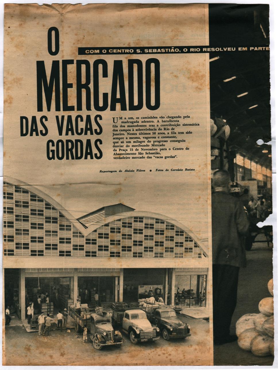 Página de matéria na revista Manchete, número 514, pág. 62, publicada pouco tempo depois da inauguração do Centro de Abastecimento São Sebastião, intitulada O mercado das vacas gordas.