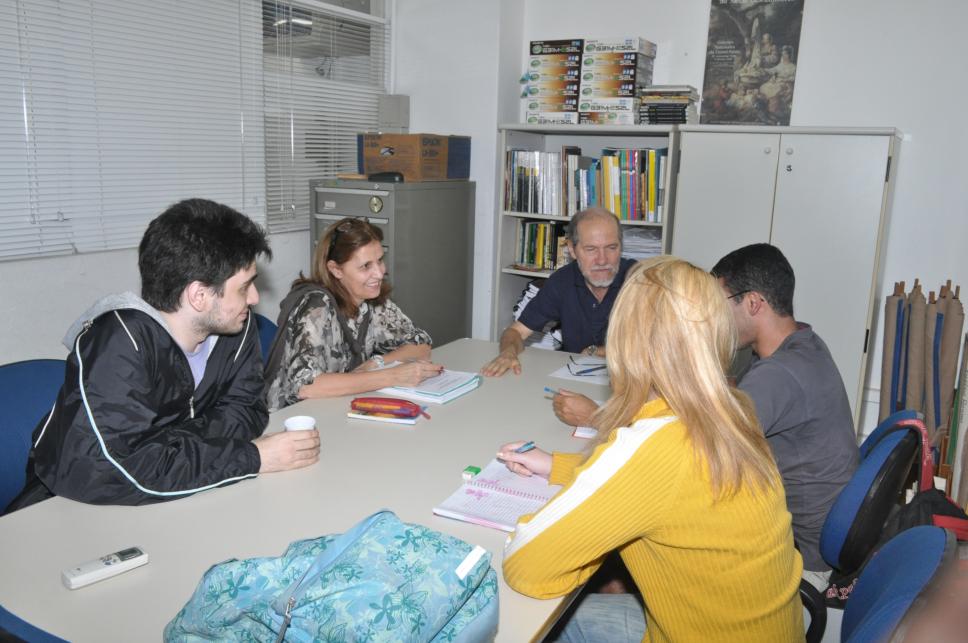 Sala de reuniões. Prof. Ilmar Rohloff e alunos.
