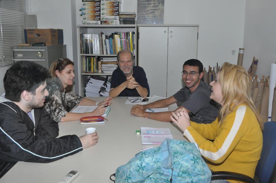 Sala de reuniões. Prof. Ilmar Rohloff e alunos.
