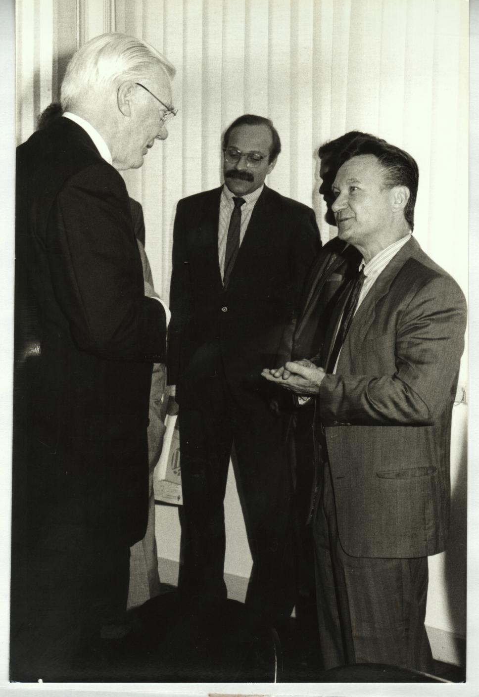 Da esq. para dir.: 1º - Robert Delmont Kennedy (presidente da Union Carbide), 2º - prof. Paulo Fiúza Bocater (ECO, Vice-Reitor para Assuntos Administrativos) e 3º - prof. João Cândido Portinari (MAT)