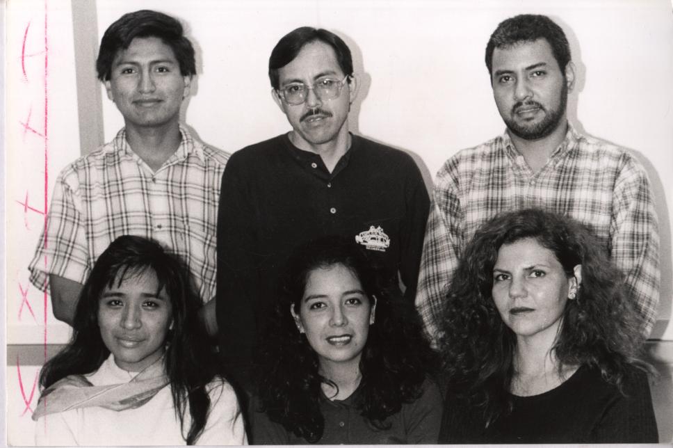 Da esq. para dir.: Claver Pari Soto, Presvitero Zamora, Carlos Carillo (em cima), Diana Cobrera, Paola Walker e Karina Barrionueva (embaixo)