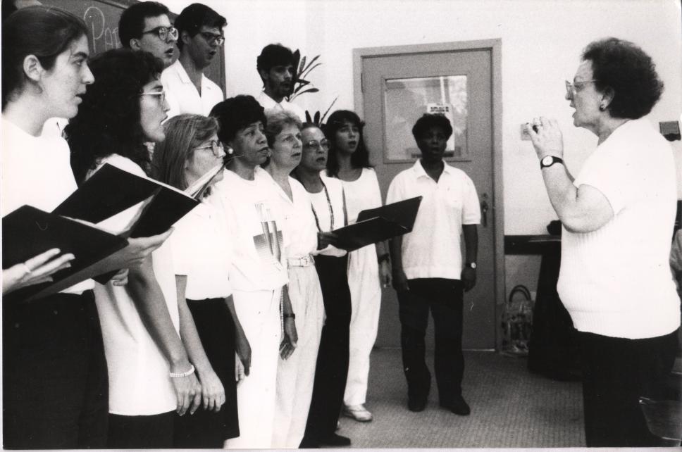 Lydia Podorolski (ex-regente do Coral da PUC-Rio), Teresa (ex-funcionária da PUC-Rio, conhecida como "Têtê") ao centro com a camisa estampada.