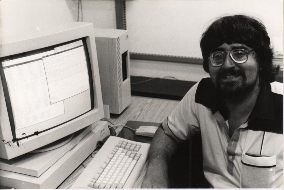 O professor Michael Anthony Stanton em reportagem no Jornal da PUC (nov/1990, p.5) sobre a integração de computadores no campus em um a rede interna.