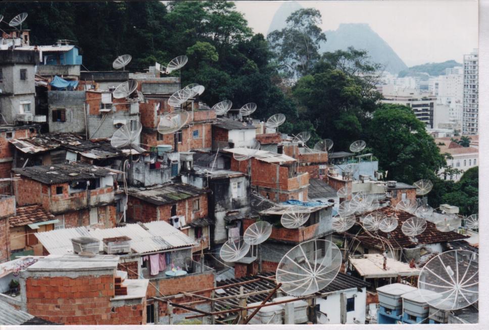 Foto do morro Santa Marta, em Botafogo para o Jornal ECO do Santa Marta. A foto mostra a multiplicação de antenas parabólicas no morro.