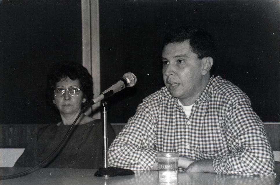 À esquerda, Maria Inês Herzog, editora do Jornal da Manchete e à direita, Paulo Nogueira, chefe de redação do SBT/Rio.