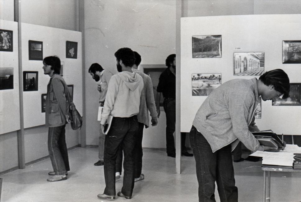 Visitantes em exposição fotográfica no hall da Biblioteca Central.