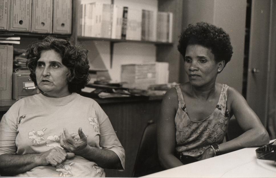 As líderes comunitárias da Rocinha, Francisca e Railda, mães de jovens que participaram do projeto de formação para reciclagem de lixo, durante entrevista ao Jornal da PUC.
