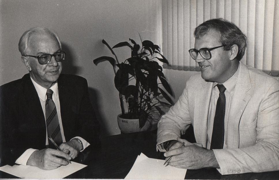 Prof. pe. Antonio Geraldo Amaral Rosa S.J. em reunião relativa ao convênio da PUC com a IBM.