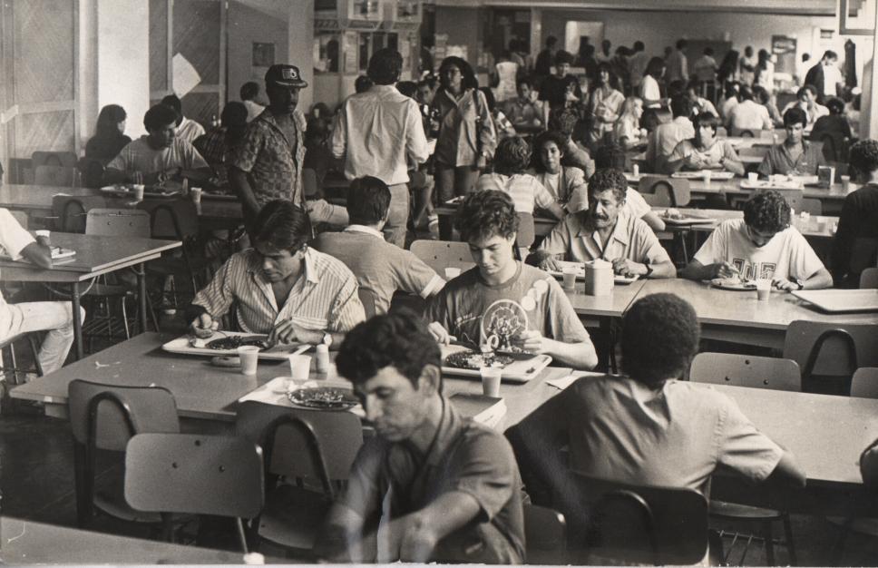 Matéria do Jornal da PUC, com fotografia do Bandejão, sobre a crise provocada pela cassação da licença dos serviços prestados pela Associação de Alunos da PUC-Rio (AAPUC) no campus.
