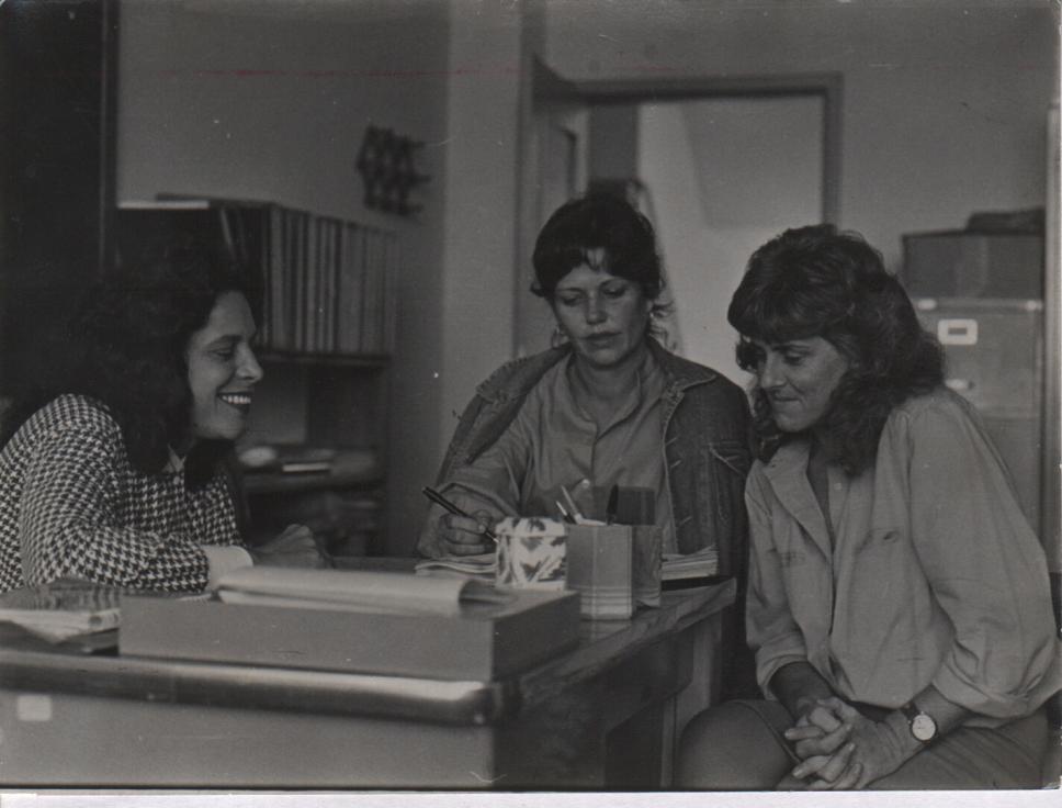 As professoras do Departamento de Educação, Ana Waleska Mendonça, Alicia Bonamino e Isabel Alice Oswald Monteiro Lelis em reunião no Departamento de Educação.