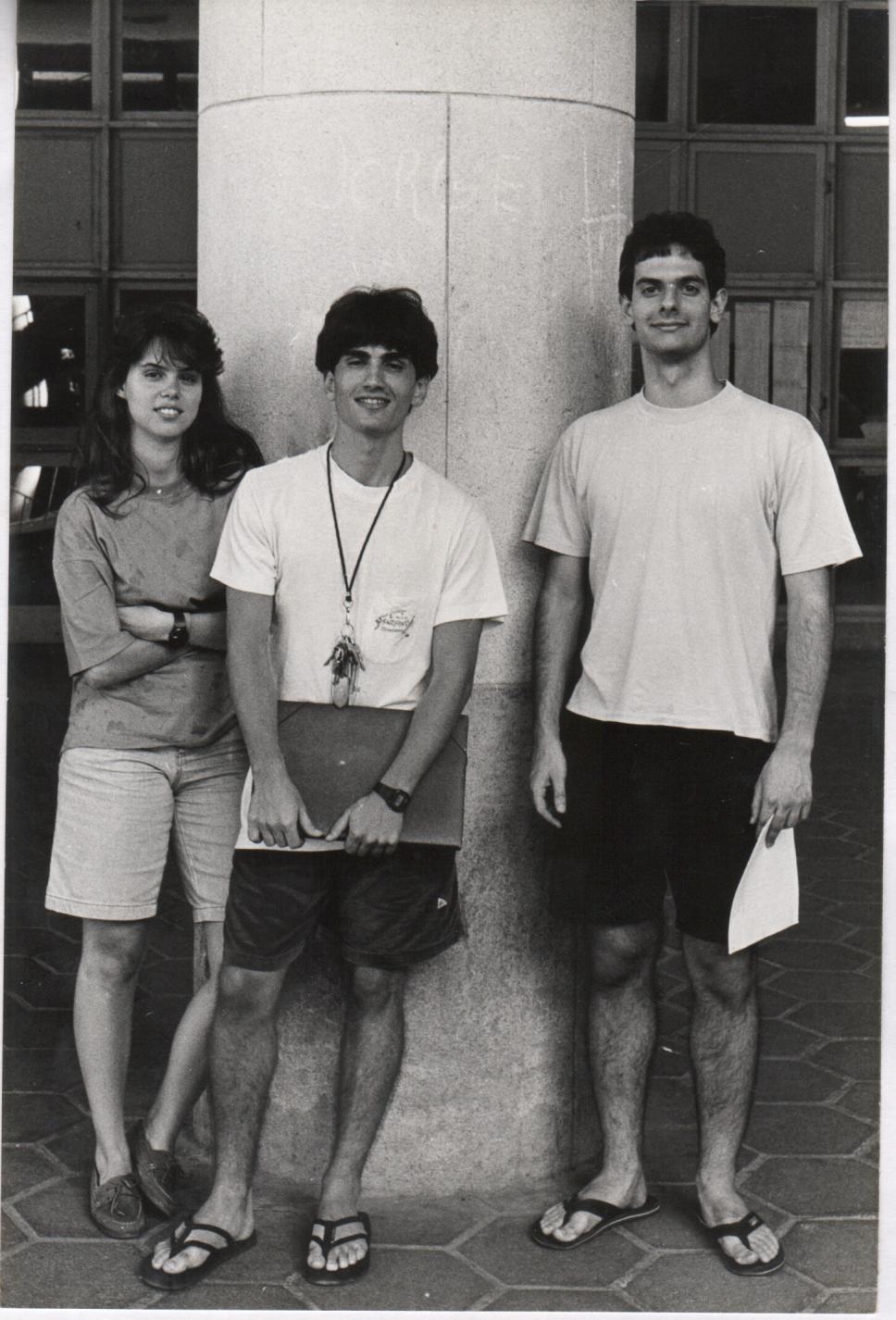 Alunos do Departamento de Física posam para foto nos pilotis da Ala Leme.