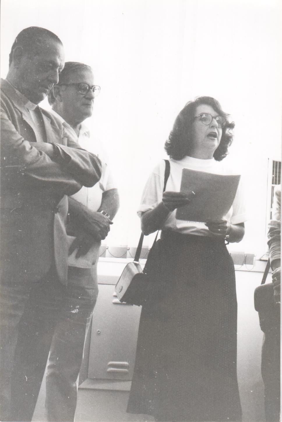 Posse da professora Zaia Brandão como nova Diretora do Departamento de Educação da PUC-Rio. Ela assumiu em nome da comissão Aceitando o Desafio, formada por mais três professores: Leandro Konder, Alicia Maria Bonamino e Ana Waleska Mendonça.