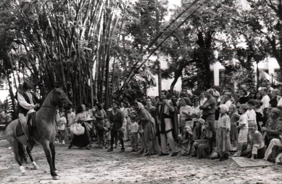 Peça Robin Hood encenada no campus da PUC-Rio. Exibida aos fins de semana, ficou em cartaz de outubro de 1995 até março de 1996.