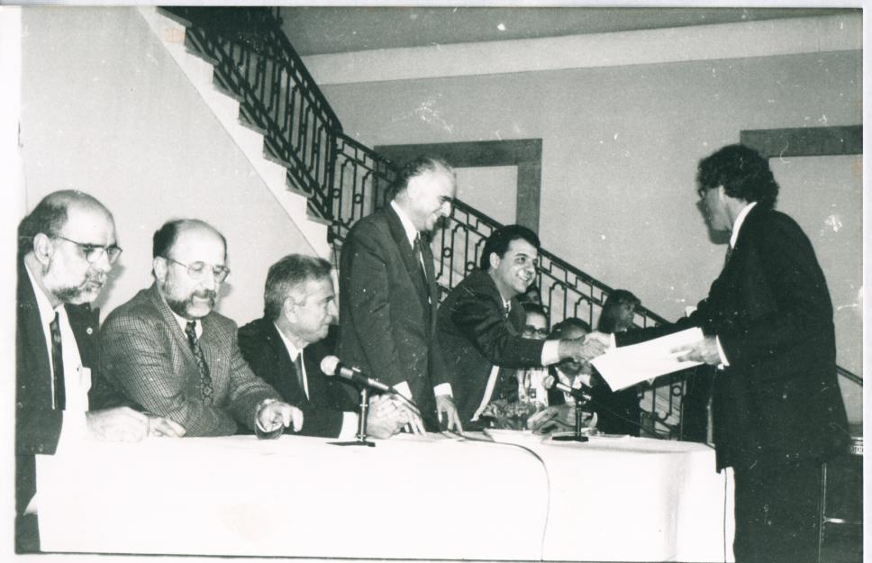 O professor Hortêncio Borges recebe o certificado oficial de auxílio financeiro referente ao convênio estabelecido entre a CAPES e a FAPERJ para o Programa de Integração Universidade Ensino Secundário (PIUES). A cerimônia foi realizada no Palácio Guanabara.