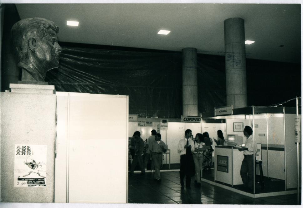 Estandes da exposição INFOPUC 95 organizada pelo diretório acadêmico do Projeto 15 (P15) do Curso de Tecnologia em Processamento de Dados da PUC-Rio. Foi realizada de 25 a 29 de setembro de 1995.