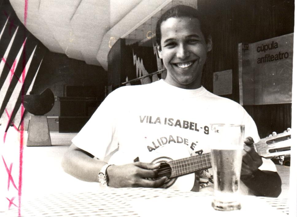 Fotografia publicada no Jornal da PUC em matéria sobre o aluno do curso de Publicidade da PUC-Rio, Rodrigo Sampaio, autor de um samba que ficou entre os sete melhores samba-enredos da Unidos da Vila Isabel.