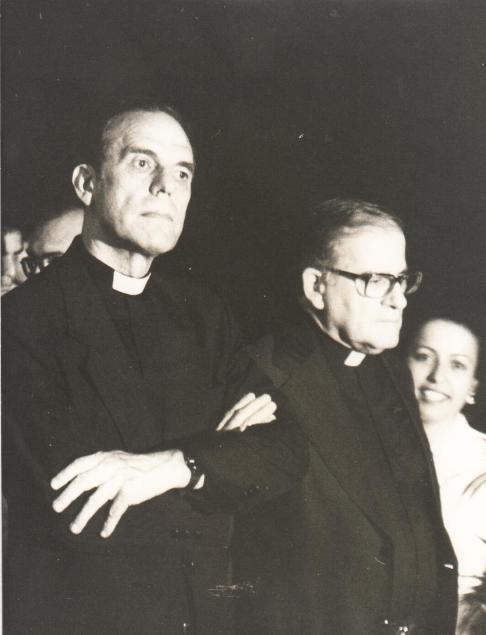 O Bispo Dom Karl Josef Romer e o Reitor Pe. Jesús Hortal S.J. no lançamento da revista CREatividade.