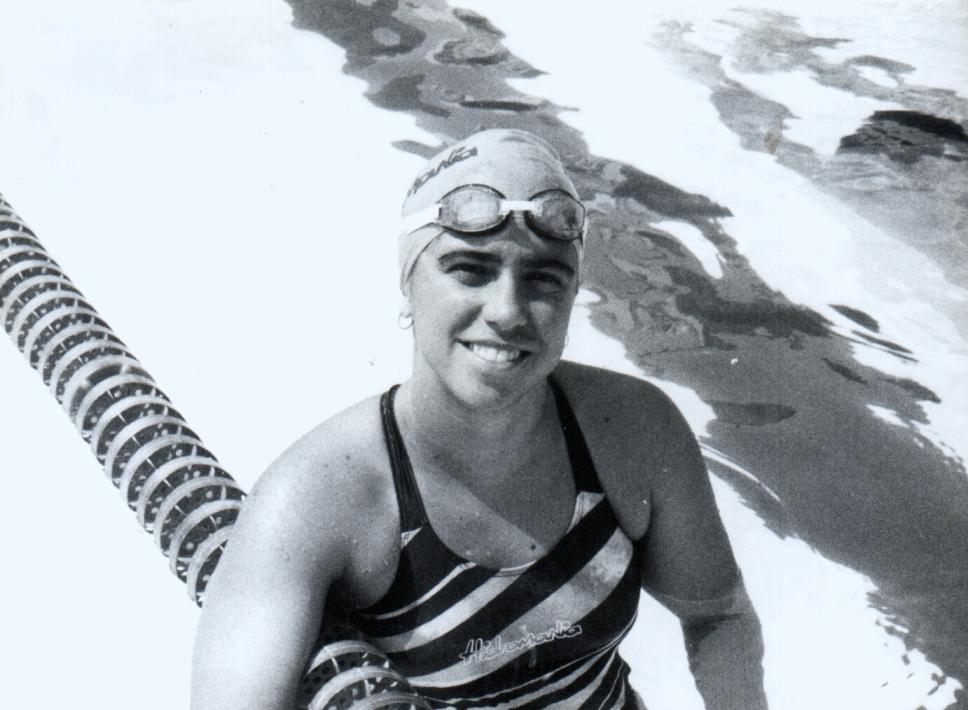 Retrato individual de Christiane Fanzeres, aluna do 6° período do curso de Administração da PUC-Rio, publicada no Jornal da PUC em matéria sobre a relação da estudante com a natação.
