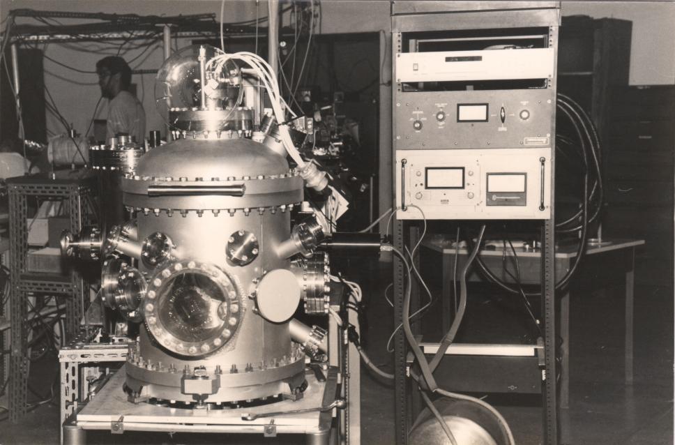 Fotografia do acelerador de partículas Van de Graaff publicada em matéria do Jornal da PUC em comemoração aos 20 anos do Laboratório Van de Graaff.