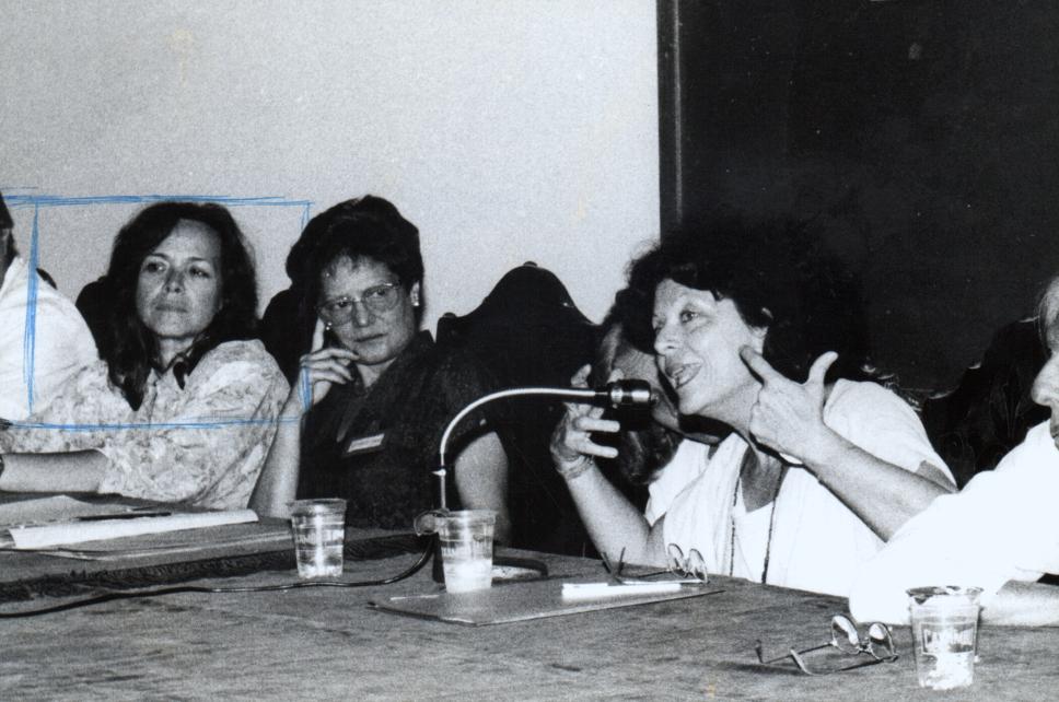 Da esq. para dir.: prof. Rosiska Darcy de Oliveira (LET), Lilian de Sá Campos (Assel/LET) e a educadora Regina de Assis. A seguir, o poeta Ferreira Gullar.