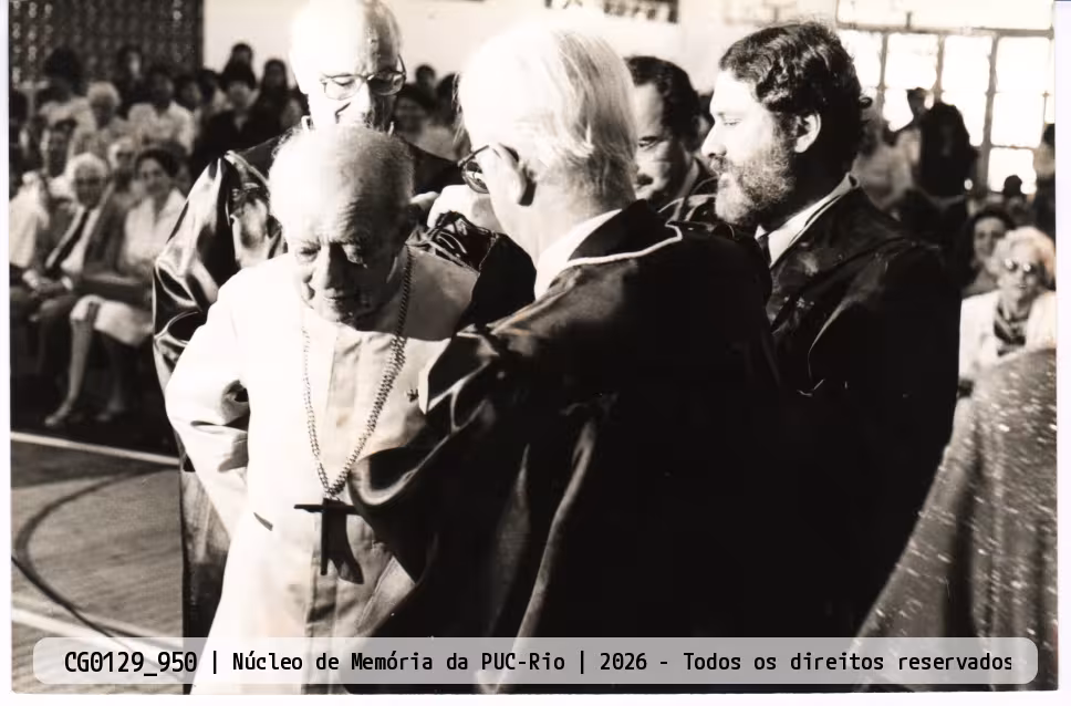Entrega do diploma de Doutor Honoris Causa a Dom Helder Camara na Missa de Ação de Graças em comemoração aos 50 anos PUC-Rio.