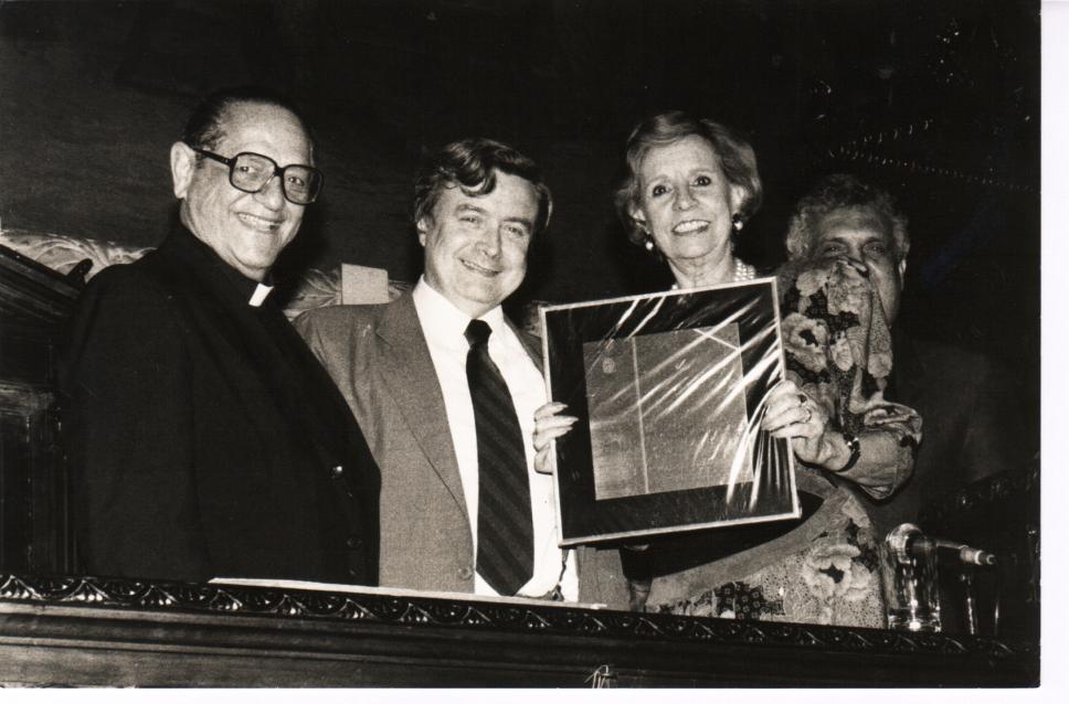 Da esq. para dir.: pe. Laércio Dias de Moura S.J. (Reitor), Deputada Daisy Lúcidi, Enrique Renteria- representante do presidente da IBM -Brasil (Rudolf Hohn), n.i.