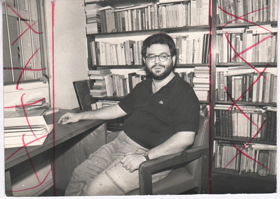 O Prof. Ricardo Benzaquen, entrevistado por conta do recebimento do Prêmio Jabuti de melhor ensaio nacional com o livro Guerra e paz: Casa-grande & senzala e a obra de Gilberto Freyre nos anos 30. 1995. Fotógrafo César Duarte. Acervo Comunicar.