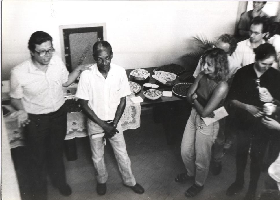 Da esq. para dir.: prof. Luiz Carlos Scavarda (FIS) e, ao lado, o funcionário Manoel de Souza