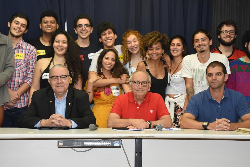Integrantes das chapas eleitas para os CAs e o DCE posam com o Reitor e o Vice-Reitor Comunitário.