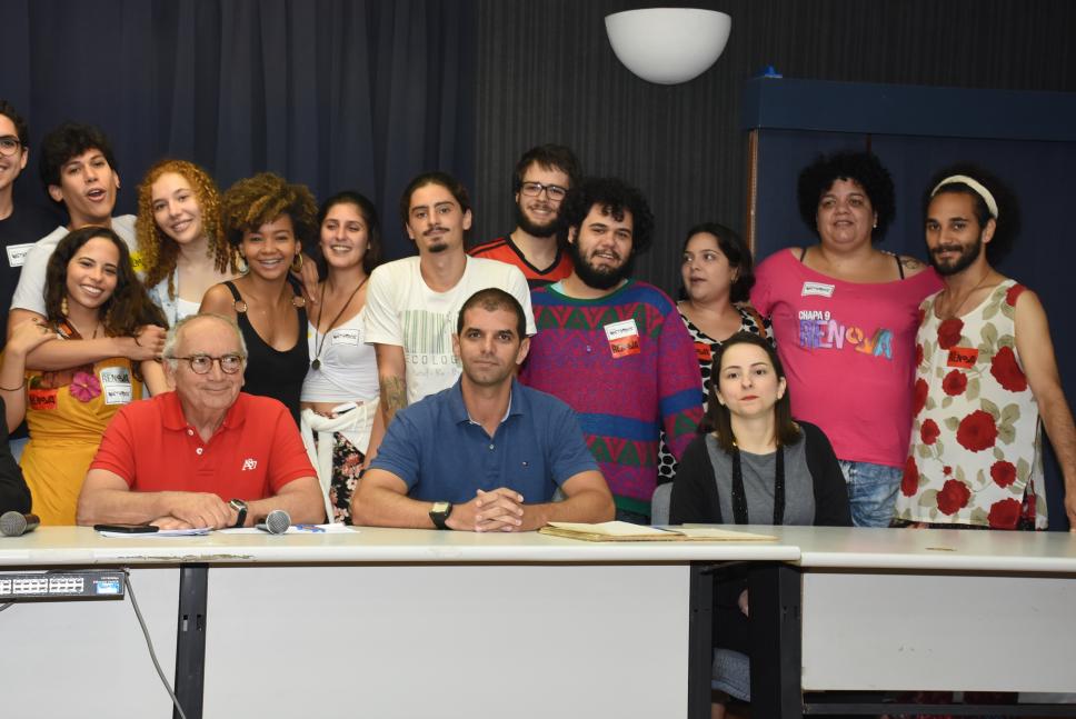 Integrantes das chapas eleitas para os CAs e o DCE posam com o Vice-Reitor Comunitário.